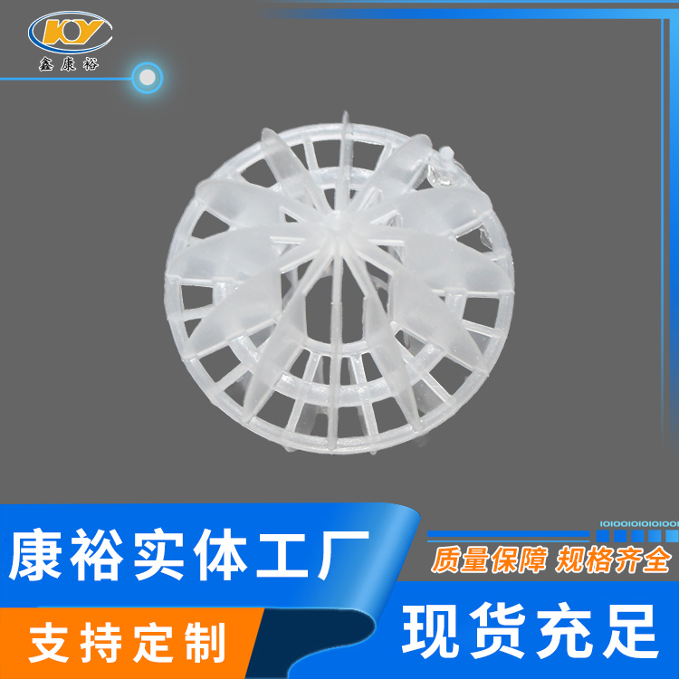多面空心球廣泛應(yīng)用于污水處理工程,主要填充冷卻塔,凈化塔中除氯氣、除氧氣、除二氧化碳,脫硫及接觸反應(yīng)塔等裝置,廢氣吸收塔、酸霧凈化塔等環(huán)保設(shè)備中。