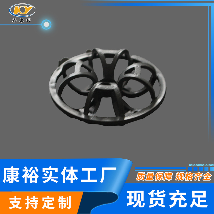 塑料花環(huán)填料早是由美國(guó)A.J.Teller于1954年研制開發(fā)出來的,故而常稱之為泰勒花環(huán)(TellerRosette)。由于填料的空隙處能有較高的持液量,可使塔內(nèi)液體的停留時(shí)間較長(zhǎng),從而增加了氣液兩相的接觸時(shí)間,提高了填料的傳質(zhì)效率。 花環(huán)填料也稱梅花環(huán)填料塑料花環(huán)填料是由12個(gè)小圓環(huán)按徑向排列而組成的一個(gè)大扁球體,很類似于一個(gè)螺旋形彈簧首尾相接繞成的一個(gè)圓球體。有的小圓呈A字;有的在小圓和大圓邊沿還帶有齒;有的外圍沒有大圓圈,只有里面的小圓組成等,客戶可根據(jù)各自的要求訂購(gòu)不同種類的花環(huán)。